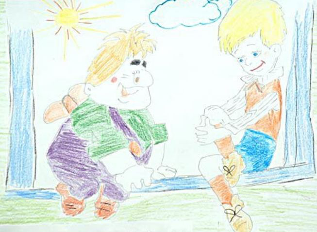 Малыш всегда с нетерпением ждал прилета своего нового друга и баловал его разными вкуснятинами. А еще они вместе летали в гости на крышу к Карлсону, где вместе поедали все сладости Малыша. Они даже умудрились сделать доброе дело — напугали и прогнали жуликов, расхаживающих по крыше дома.