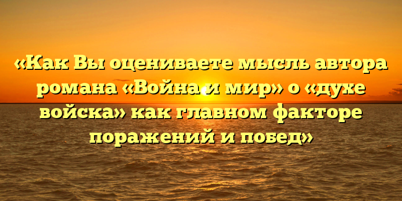 Публикуем свежие сочинения 2026 года по теме «Как Вы оцениваете мысль автора романа «Война и мир» о «духе войска» как главном факторе поражений и побед».