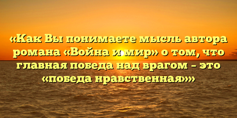 Мне кажется, что автор романа «Война и мир» Лев Толстой хотел сказать, что главная победа над врагом — это «победа нравственная». Это значит, что важно не только побеждать в бою или захватывать территории, но и сохранять свою человечность, моральные принципы и честность.