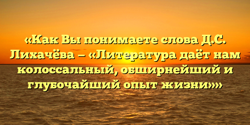 - 7 лучших сочинений на тему «Как Вы понимаете слова Д.С. Лихачёва — «Литература даёт нам колоссальный, обширнейший и глубочайший опыт жизни»»