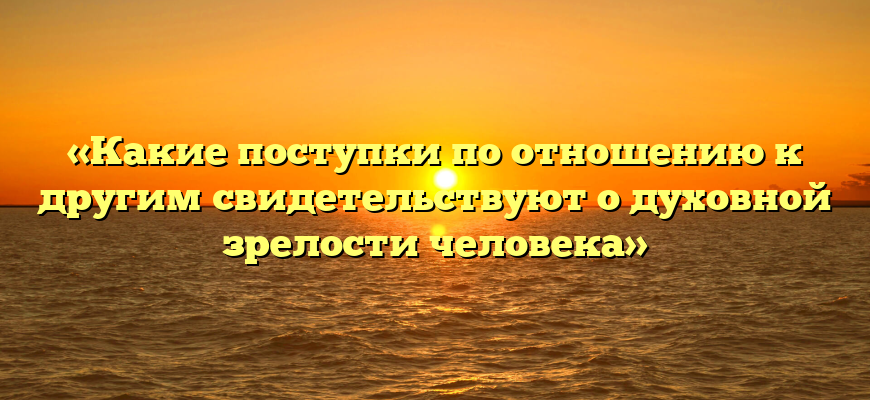 Духовная зрелость человека — это когда он ведет себя достойно и с уважением к другим. Существует много разных поступков, которые свидетельствуют о такой зрелости. Например, человек, который проявляет снисходительность и понимание к другим, показывает, что он находится на пути духовного развития.