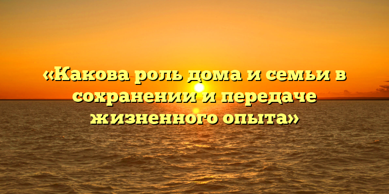 Роль дома и семьи в сохранении и передаче жизненного опыта очень важна. Дом и семья — это место, где мы проводим большую часть своей жизни и где получаем первоначальные уроки и знания о мире.
