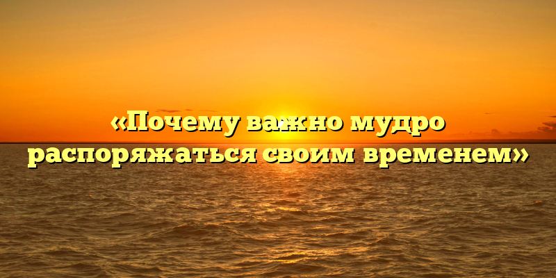 Важно мудро распоряжаться своим временем, потому что время – это самый ценный ресурс, которым мы обладаем. Когда мы не умеем правильно распределять свое время, мы теряем возможность сделать много важных дел и достичь своих целей.
