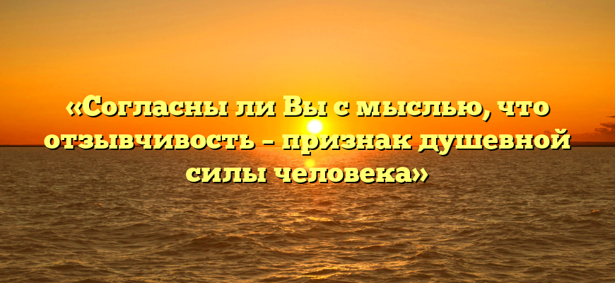 Я согласен с мыслью, что отзывчивость — признак душевной силы человека. Это значит, что когда человек оказывается способным откликнуться на чужую боль, нужду или радость, он показывает свою великодушие и милосердие.