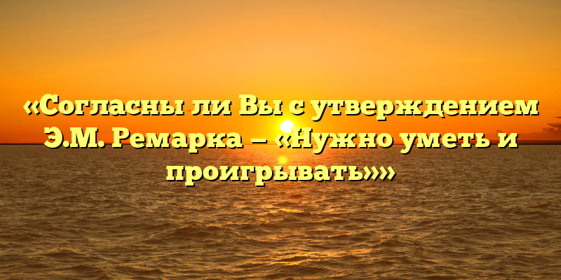 Публикуем свежие сочинения 2026 года по теме «Согласны ли Вы с утверждением Э.М. Ремарка — «Нужно уметь и проигрывать»».