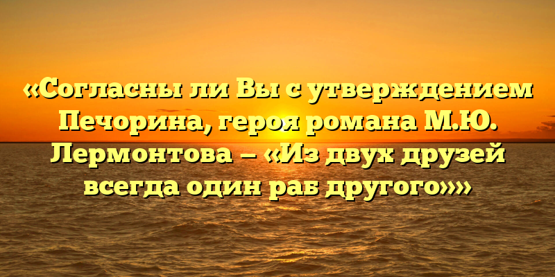 Публикуем свежие сочинения 2026 года по теме «Согласны ли Вы с утверждением Печорина, героя романа М.Ю. Лермонтова — «Из двух друзей всегда один раб другого»».