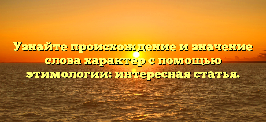 Слово «характер» имеет древнегреческое происхождение и означает «отпечаток» или «след». Значение слова расширилось со временем, и сегодня оно используется для обозначения индивидуальных черт личности и устойчивых моральных принципов. В философии характер является центральной концепцией в этике и помогает человеку совершать правильные действия.