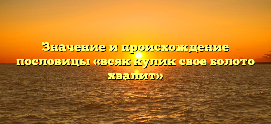 Значение пословицы «всяк кулик свое болото хвалит» можно обозначить как: