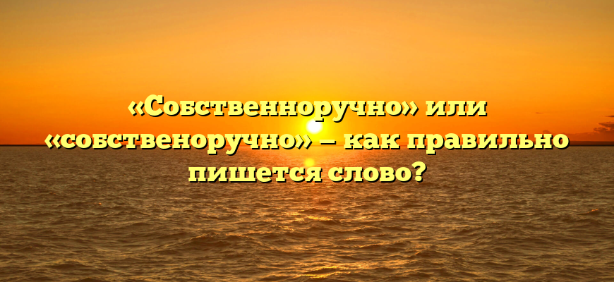 Как пишется правильно: «собственноручно» или «собственоручно»?